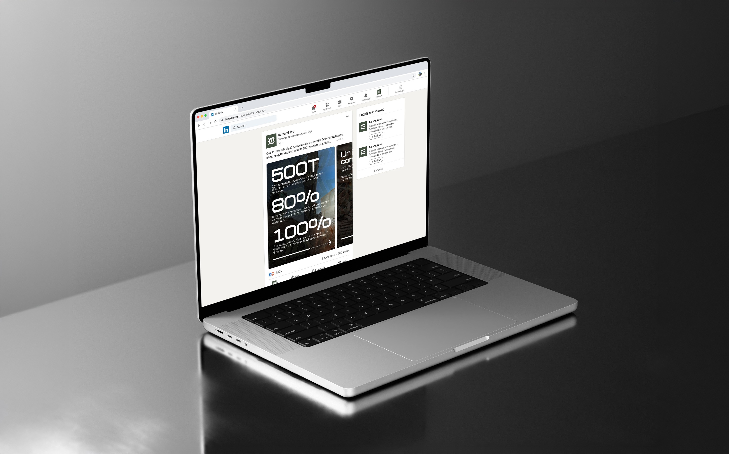 A complete brand ecosystem that elevates Bernardi Evo's market presence. The visual identity, website, and social strategy work together to communicate expertise, innovation, and environmental responsibility, establishing the company as a trusted leader in scrap metal recycling.